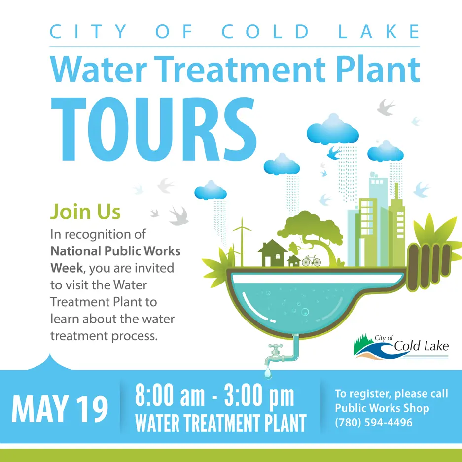 If you have ever been curious how your drinking water makes its way from Cold Lake to your tap, find out by attending our Water Treatment Plant tour on May 19. From 8:00AM to 3:00PM, learn about all the science and engineering that goes into creating some of the cleanest drinking water around!