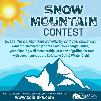 It has been a record year for snow fall in Cold Lake this year, and snow mountain is higher than ever! But if you want to wager a guess when this massive hill of snow will melt this summer, you could win. Fill out our form and submit your best guess on the official melt date of Snow Mountain you could have the choice of the following prizes: