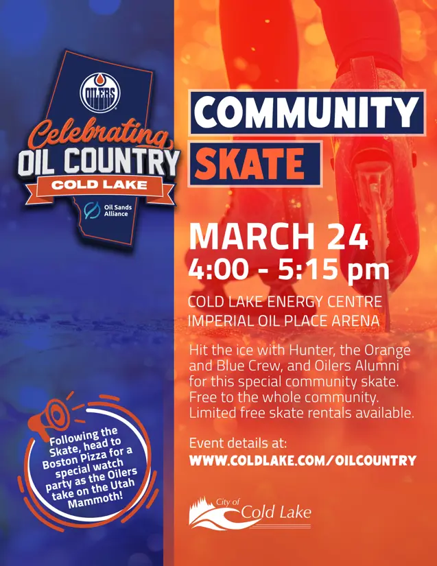 "Cold Lake is tremendously honoured to be the Edmonton Oilers choice for Celebrating Oil Country's feature city," said Cold Lake Mayor Bob Mattice. "We have a large and enthusiastic Oilers fan base, and this celebration will allow our residents to enjoy exciting Oilers hockey while building community spirit in Cold Lake. We would like to thank Pathways Alliance for their generous sponsorship and the Edmonton Oilers for the chance to highlight everything Cold Lake has to offer."